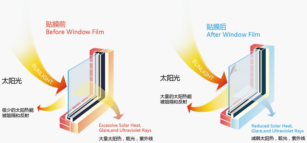 夏季,阳光控制玻璃贴膜能阻挡刺目的太阳光的巨大热能,可阻隔高达79%的太阳热进入室内,有助于大楼和办公室更荫凉。冬季,低辐射的阳光控制LOW-E膜又可降低热能向室外散发,可降低热损耗30%,留住室内温度。