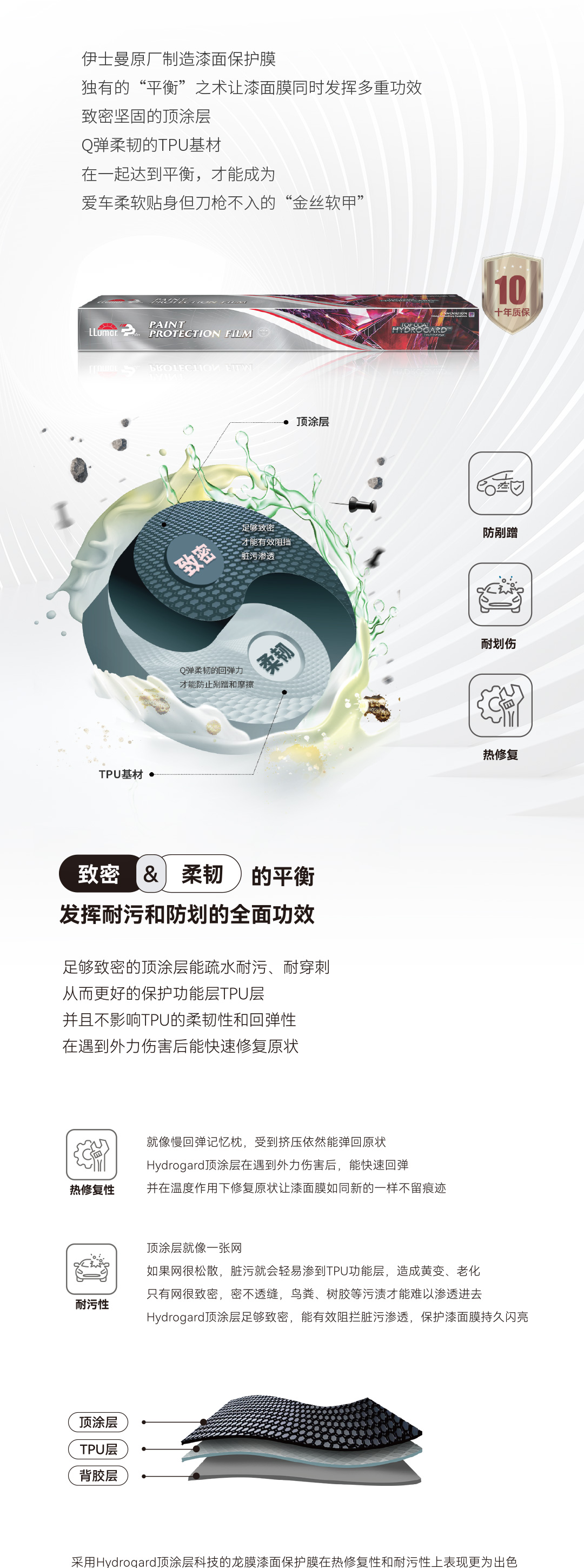 (注: 厚度包括顶涂层、TPU基材、背胶层厚度)