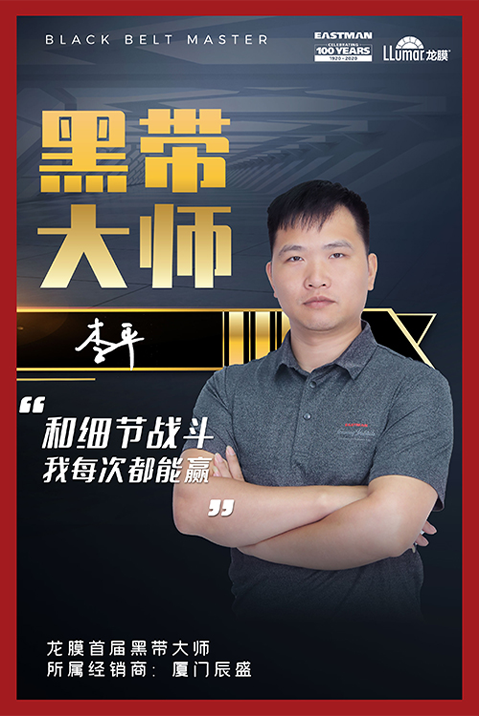 彼时,陈府明经常在路上看见带着龙膜logo的汽车,心中就对龙膜产生了很深的印象,认为龙膜是高端强大的品牌,后来等到所属公司开始代理龙膜后,他才知道当时的判断确实没有错。被问到为何想成为七星大师,陈府明答道:“三星、五星的技师虽然技术很强,但很少有上台发言的机会,只是默默施工,而成为七星大师后便会拥有公开讲课的能力和权利,这能带来非常强的荣誉感。当然,荣誉感也伴随着责任感,我相信未来我能够认真细心地教好每一位学生。”