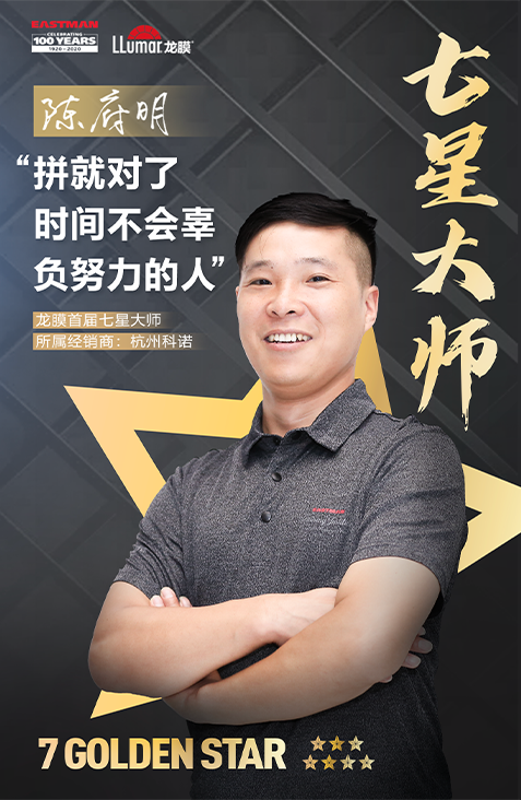 彼时,陈府明经常在路上看见带着龙膜logo的汽车,心中就对龙膜产生了很深的印象,认为龙膜是高端强大的品牌,后来等到所属公司开始代理龙膜后,他才知道当时的判断确实没有错。被问到为何想成为七星大师,陈府明答道:“三星、五星的技师虽然技术很强,但很少有上台发言的机会,只是默默施工,而成为七星大师后便会拥有公开讲课的能力和权利,这能带来非常强的荣誉感。当然,荣誉感也伴随着责任感,我相信未来我能够认真细心地教好每一位学生。”